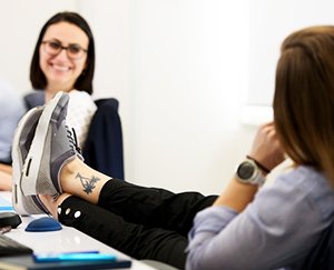 women with her feet on the table
