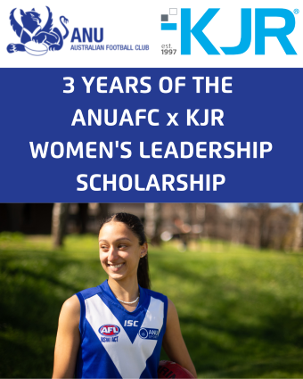 A banner related to 3 YEARS OF THE ANUAFC x KJR WOMENS LEADERSHIP SCOLARSHIP