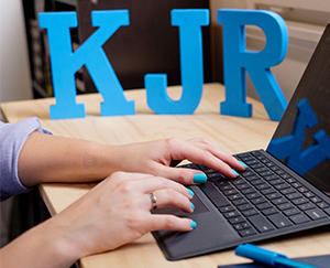 women working on a laptop at KJR