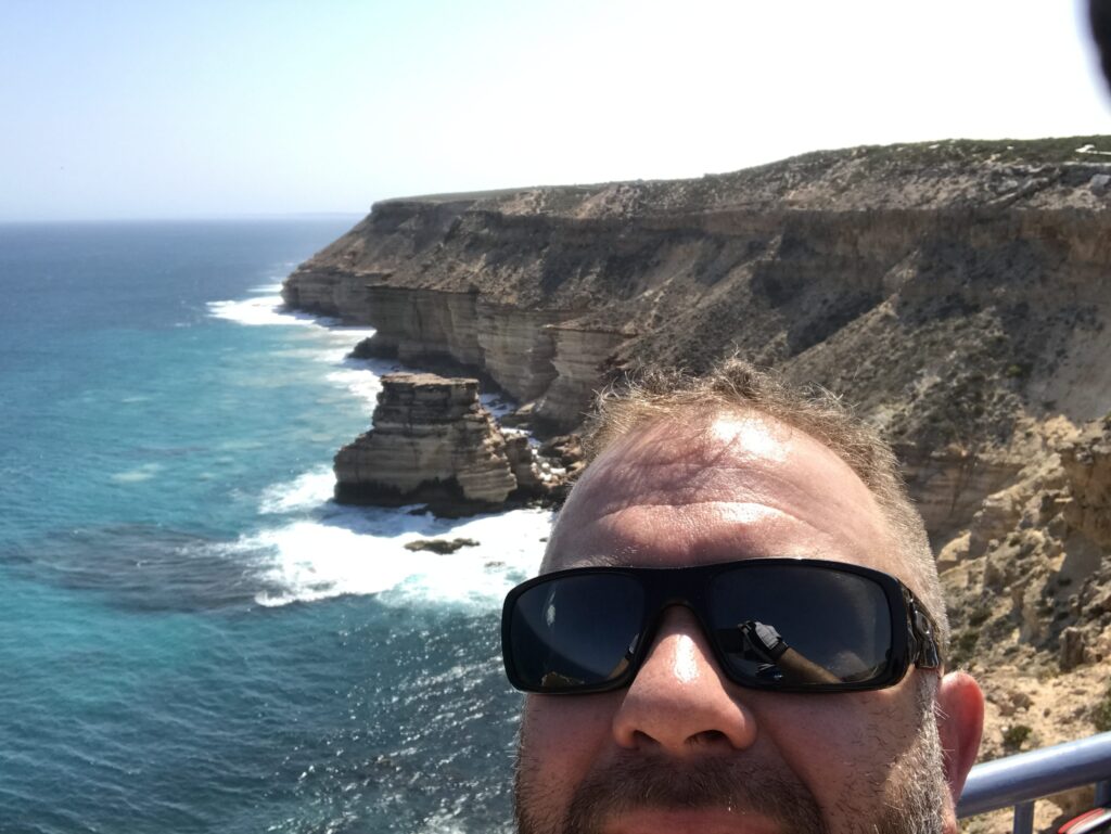 Today we were blessed with the wind behind us and as a result, we were literally flying and completed our 115kms in 3 hours and 36 minutes. We stopped off in the magical Kalbarri National Park after zooming down the hill and it was amazing to feel the power of the tail we’d enjoyed during the day’s ride blowing us around as we descended. In our haste to see what was there, we all missed the sign that said “No Bikes” but luckily the ranger was watching and quickly corrected our oversight. The scenery was spectacular and in the distance, whales frolicked in the Indian Ocean.