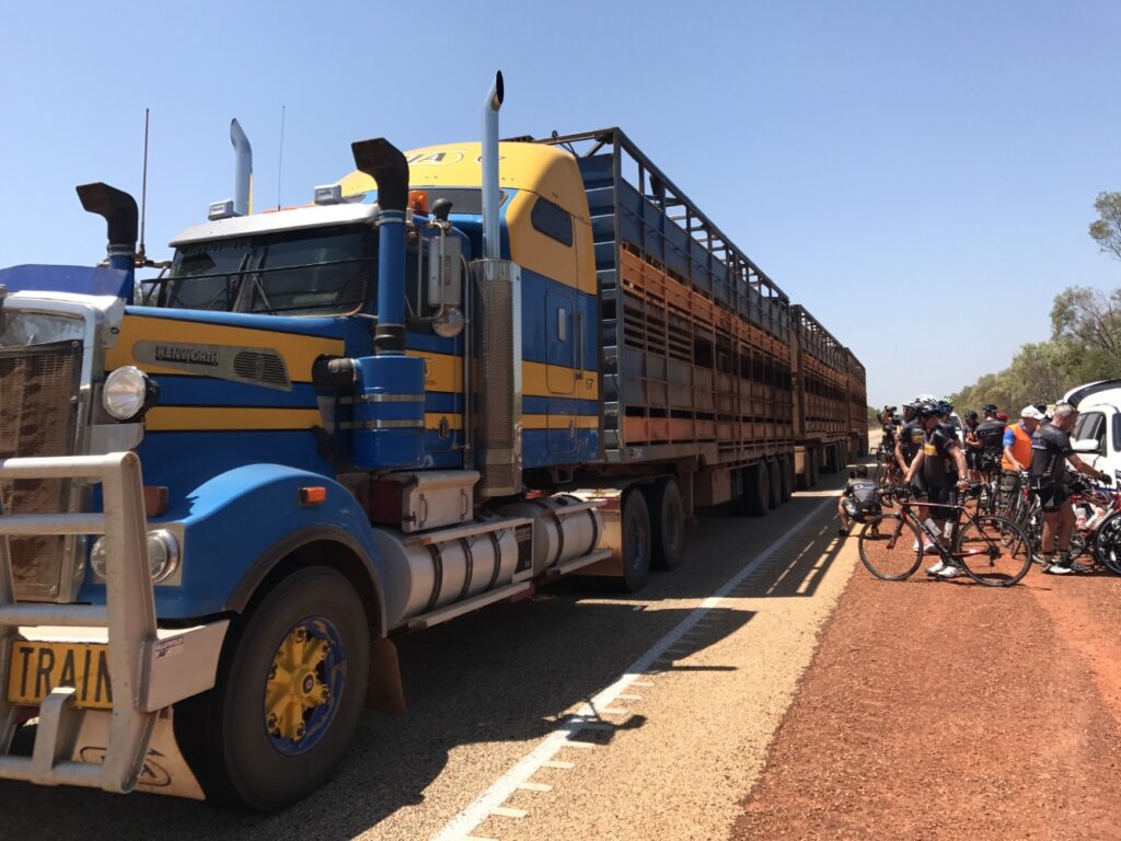 We made to the penultimate day. Today’s ride saw us ride from just outside Port Headland to the Pardoo Roadhouse about 110kms up the road. We had a short uplift this morning to get out of the way of the Road Trains. According to the locals there is over 500 three and four-trailer beasts that rumble in and roll out of Port Hedland each day. The Tour organisers have safety as our number one priority and even thought the truckies in WA have been legendary with the support and respect they’ve shown the peloton, we decided to show them some respect in return by minimising our interactions this morning.